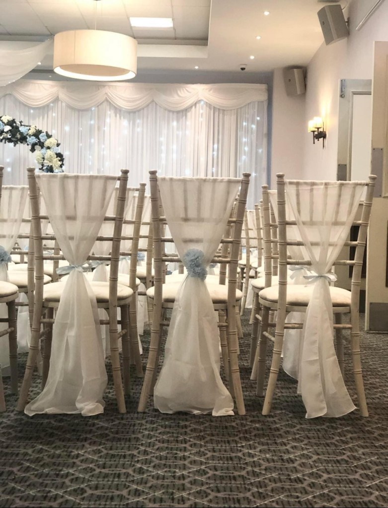 Chair cover and sash – £3.00 per chair (More coming soon!)