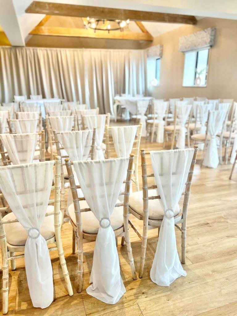 Ivory sash with sparkly clasp – £2.50 per chair