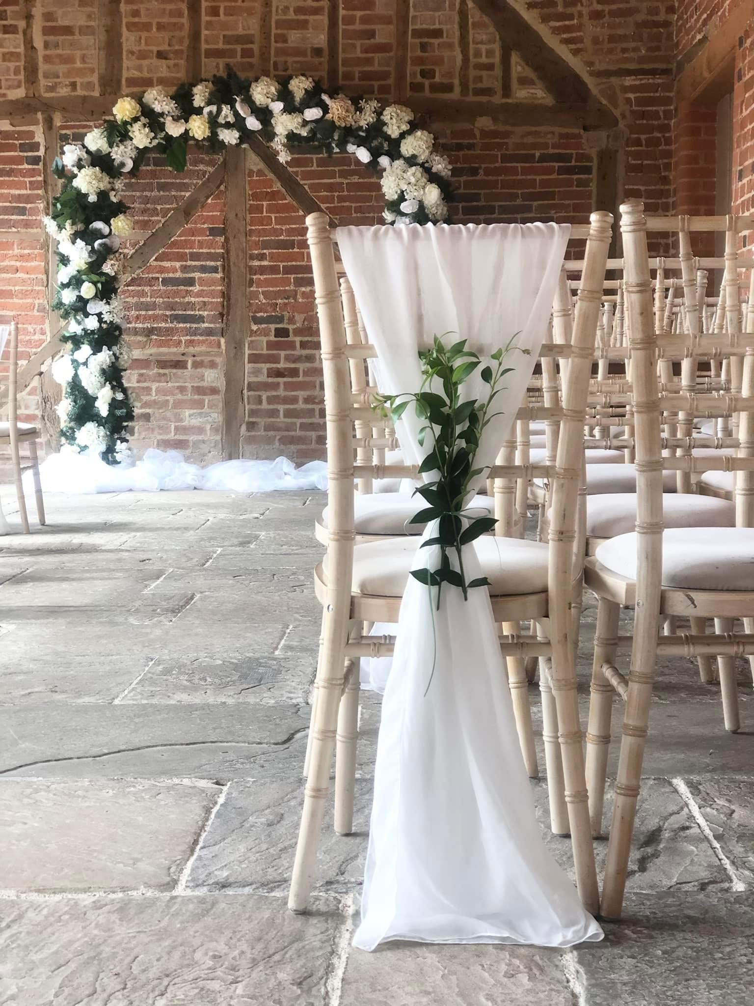 Ivory chair sash with fresh foliage – £3.00 per chair