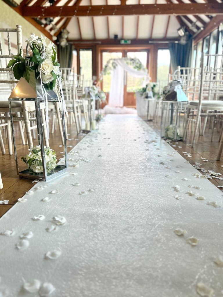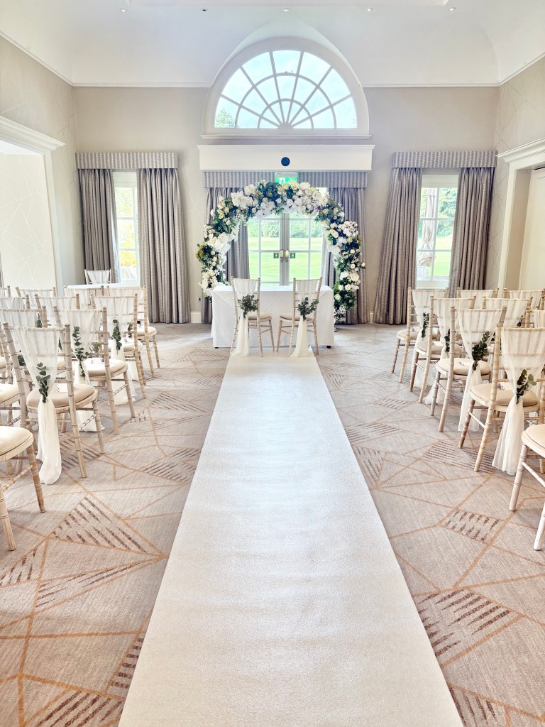 Arch, Aisle runner and Aisle chair sashes (shown in picture, excluding foliage on chairs)