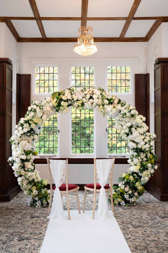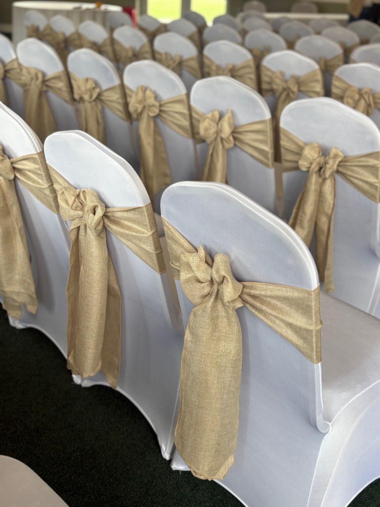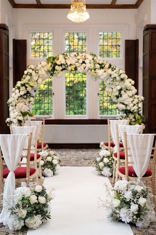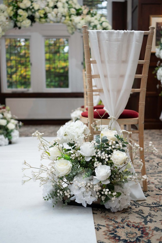 Arch, Aisle runner and Aisle chair sashes (shown in picture, excluding foliage on chairs)