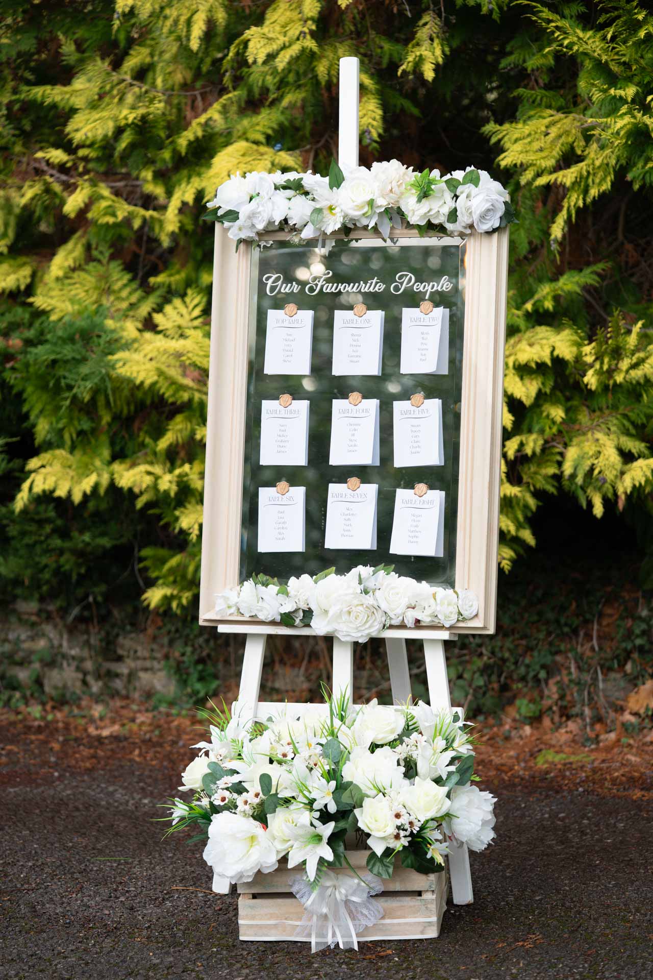 Evie – Seating Plan with wooden box of flowers – £60.00